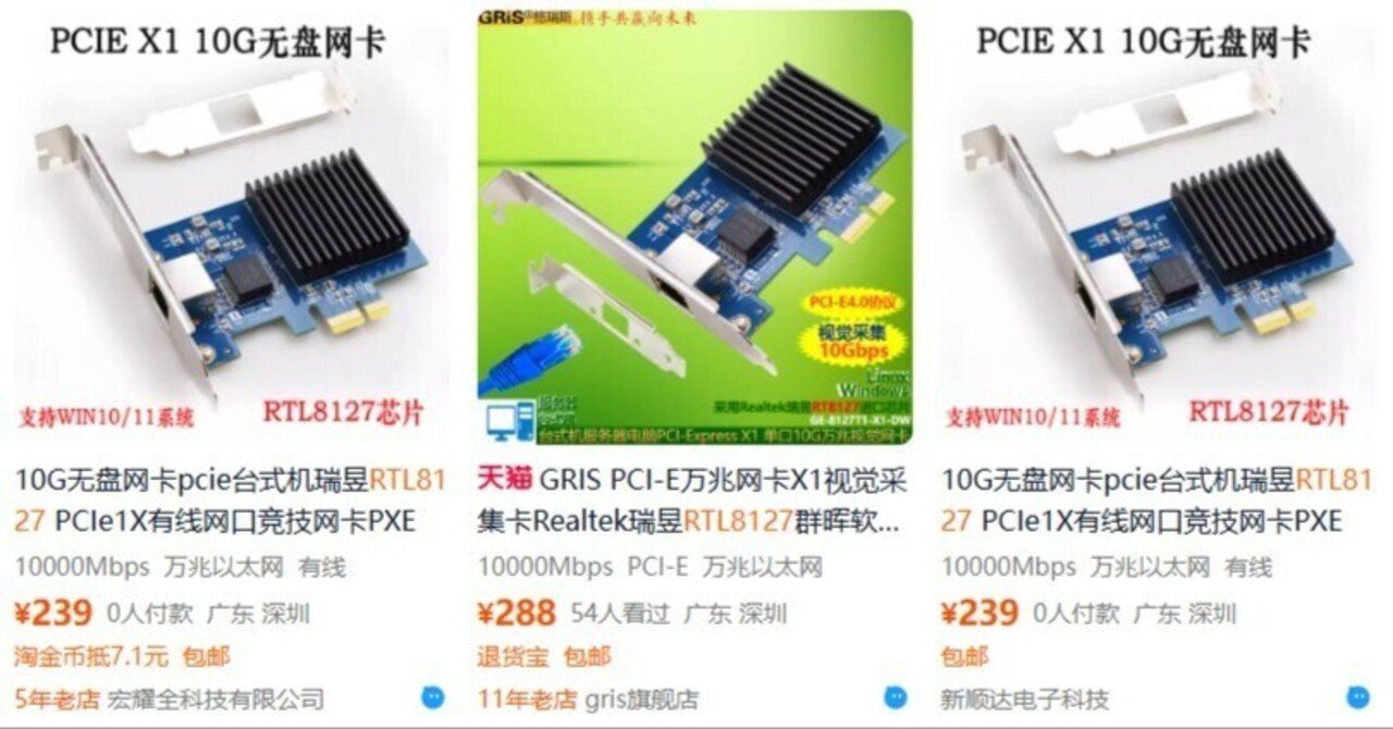 というわけで、PCIE Gen3 x4のRTL8127搭載NICを探し回っていたわけですが、これがなかなか無い…